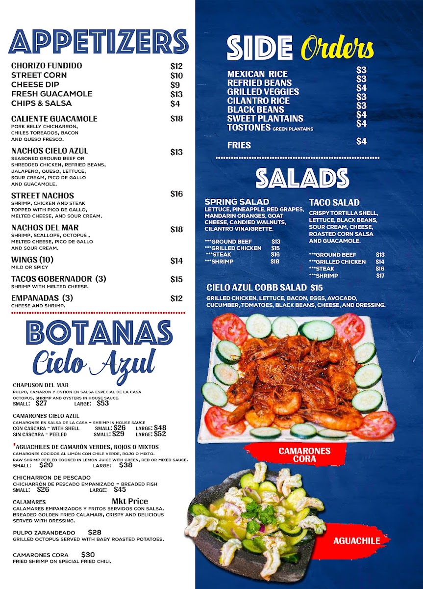 Introducing the Menu at Cielo Azul Mexican Kitchen and Seafood
